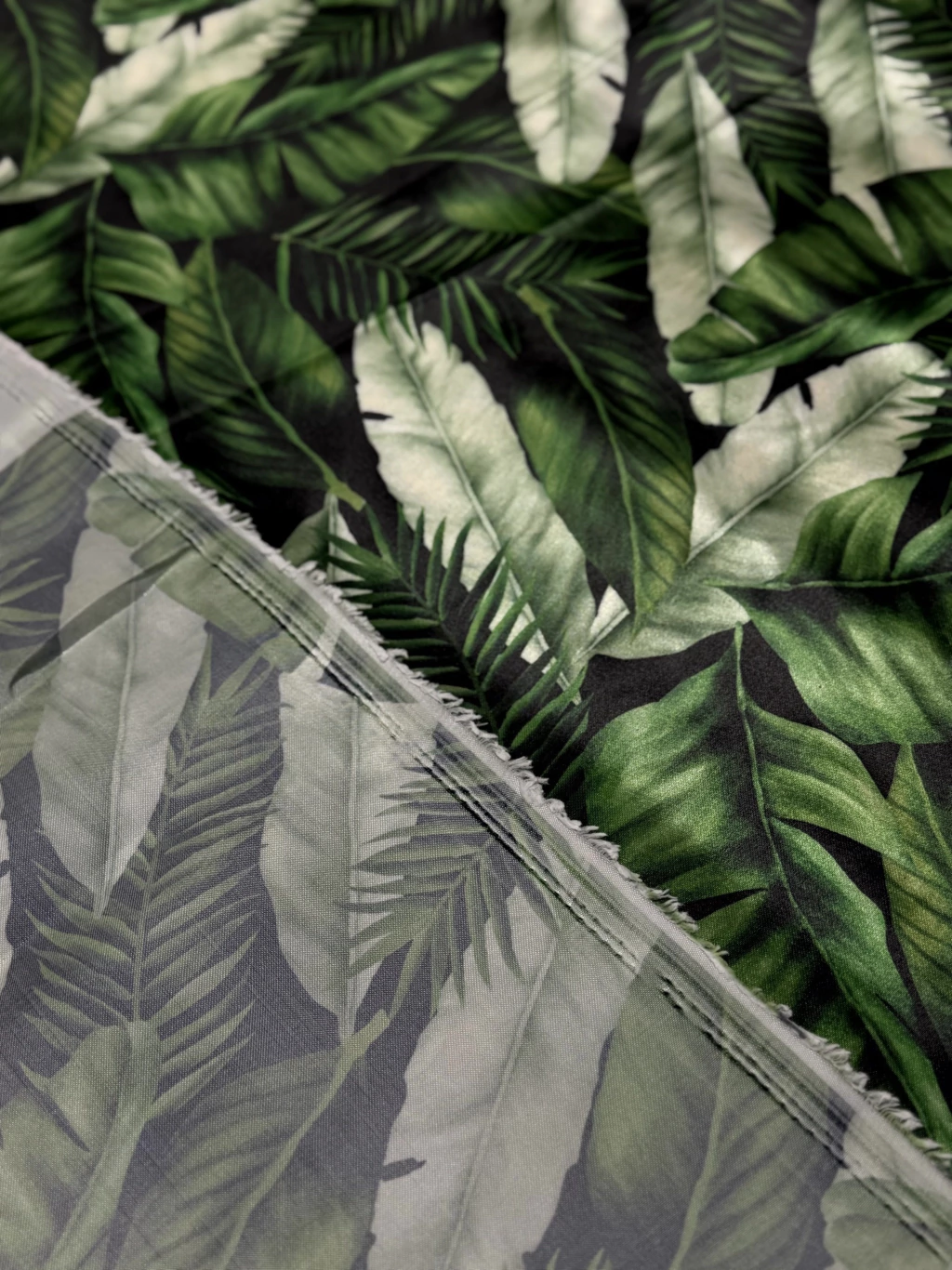 Este tecido cetim digital apresenta uma estampa deslumbrante de folhas tropicais em diferentes tons de verde, com detalhes nítidos e realistas que capturam a essência da natureza. Com 100% de gramatura e 1,50m de largura, o cetim oferece um toque suave e um brilho luxuoso, tornando-o perfeito para roupas leves e sofisticadas. A impressão digital de alta definição garante cores vibrantes e uma textura rica, ideal para vestidos, blusas, saias e acessórios que exalam frescor e elegância.